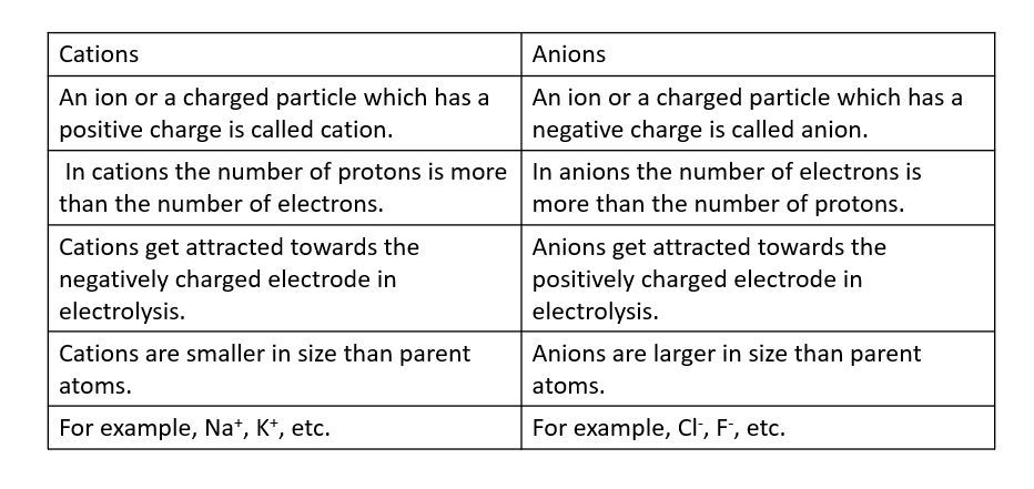 Difference Between Cation And Anion In Tabular Form